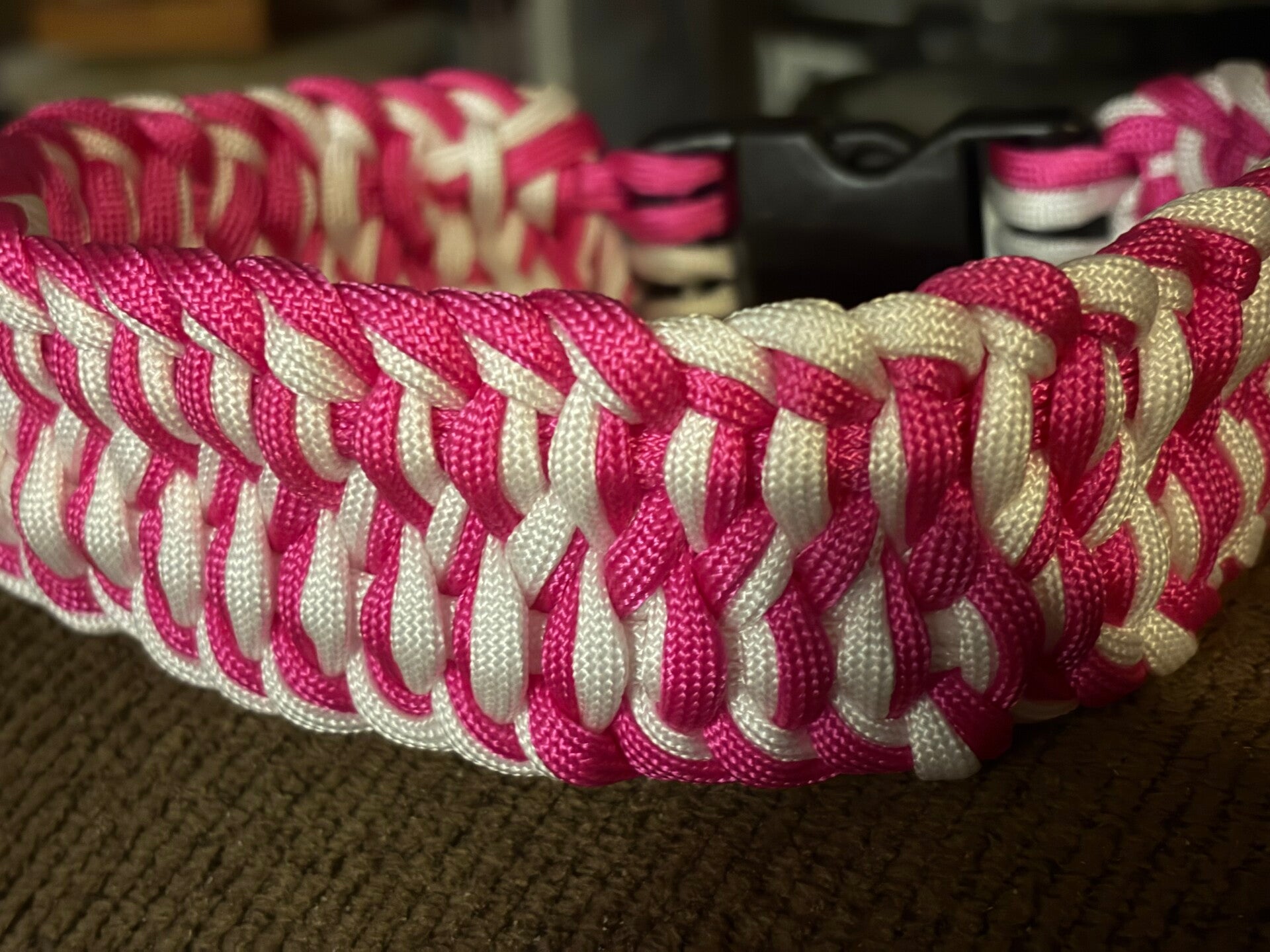 Made in colors that you choose, this collar is very stylish and sits wide on your pets neck. You can very easy dress it up more with plain or colourful beads or hanging charms. I would say that this collar will suit an large dog. You have your choice in the the figure 8 josephine or the josephine weave, in the weave we can do a hanging dog tag or a hanging of beads with your pets name on it.